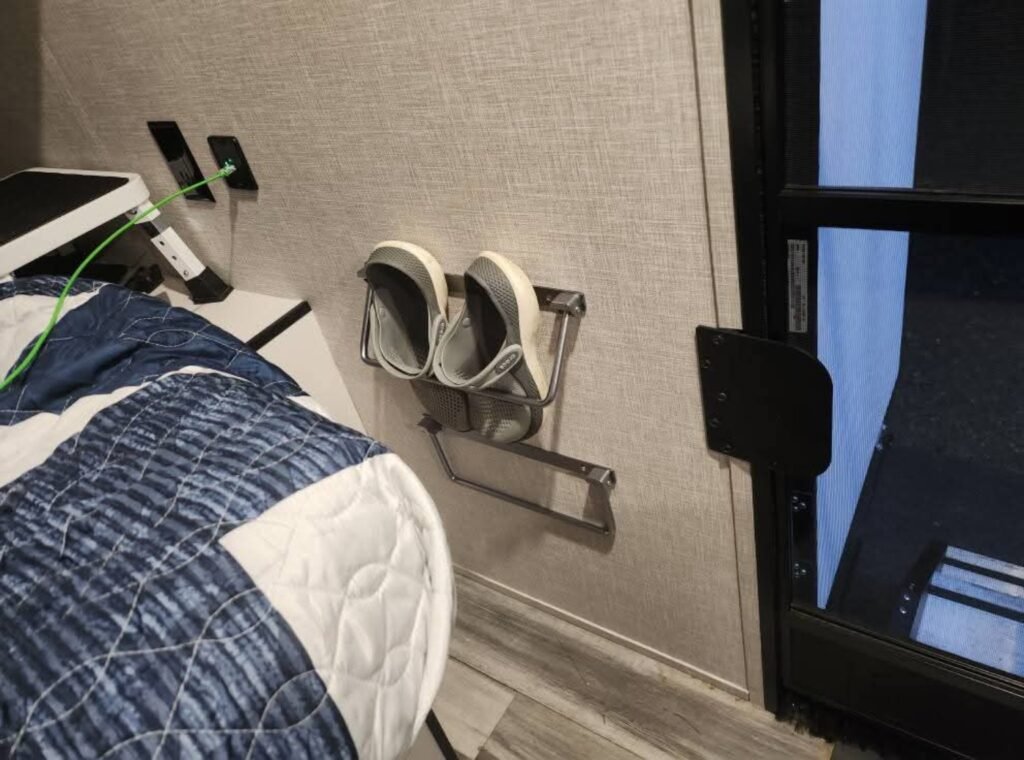 Keeping shoes organized inside an RV can be surprisingly difficult. Shoes often end up scattered near the door, taking up valuable floor space and making the entryway look cluttered.