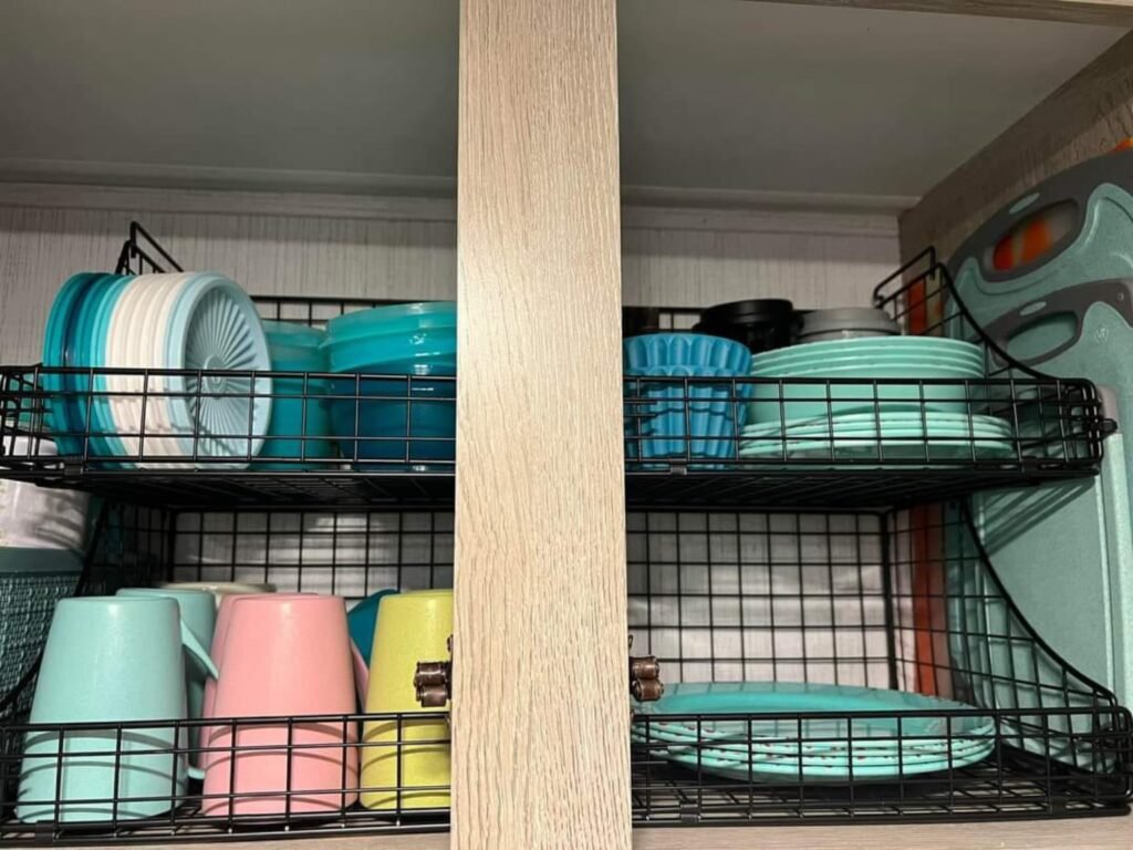 RV cabinets are often deep but not very tall, which makes stacking dishes, bowls, and kitchen items difficult. Without proper organization, items quickly become cluttered and hard to access.