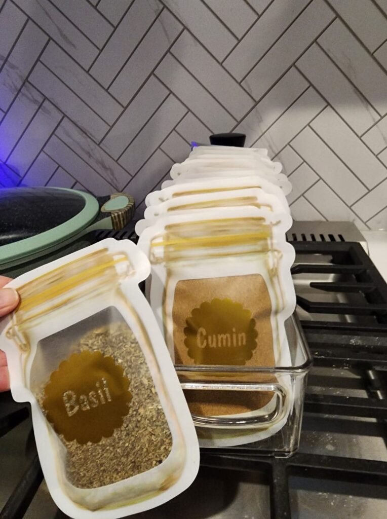 In addition to spices, these reusable bags are great for storing snacks during road trips.