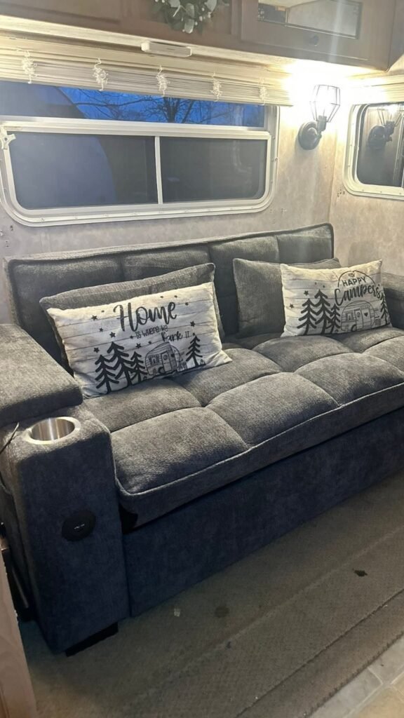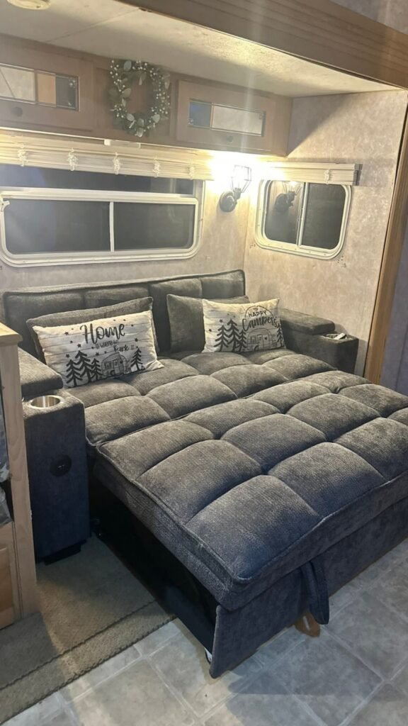 Upgrading to a multifunctional sofa like this doesn’t just improve functionality — it transforms the entire feel of your RV interior. What was once a basic seating area becomes a comfortable, organized, and practical living space. Combined with simple improvements such as updating the flooring or adding decorative cushions, the result is a space that feels more like a small apartment than a traditional RV.